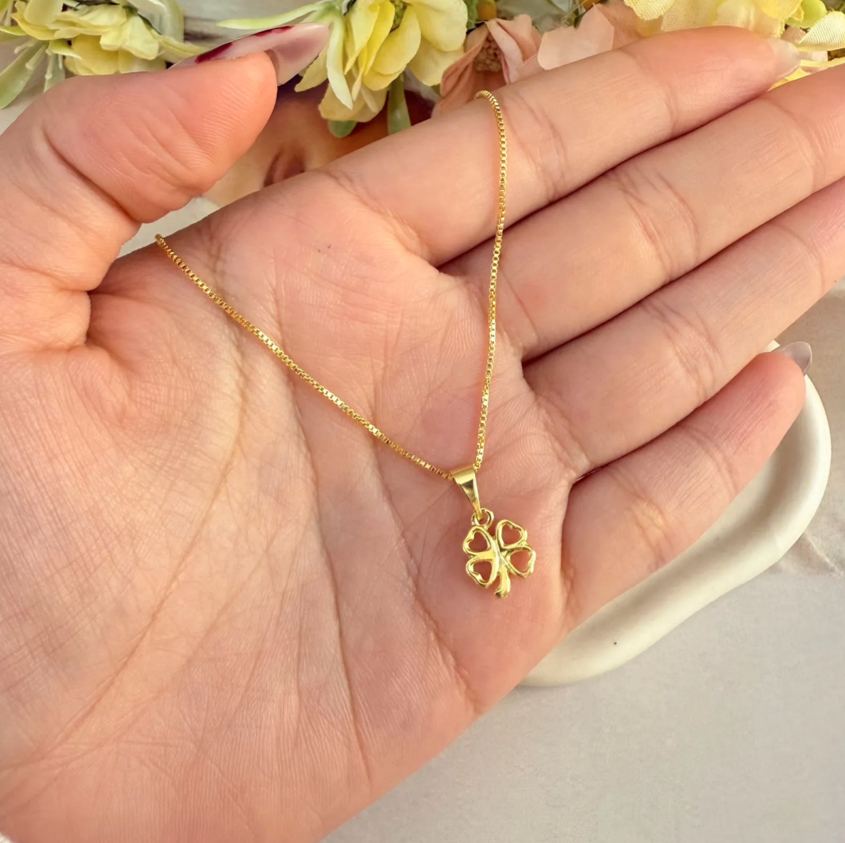 Colar trevo de 4 folhas em banho de ouro 18k.